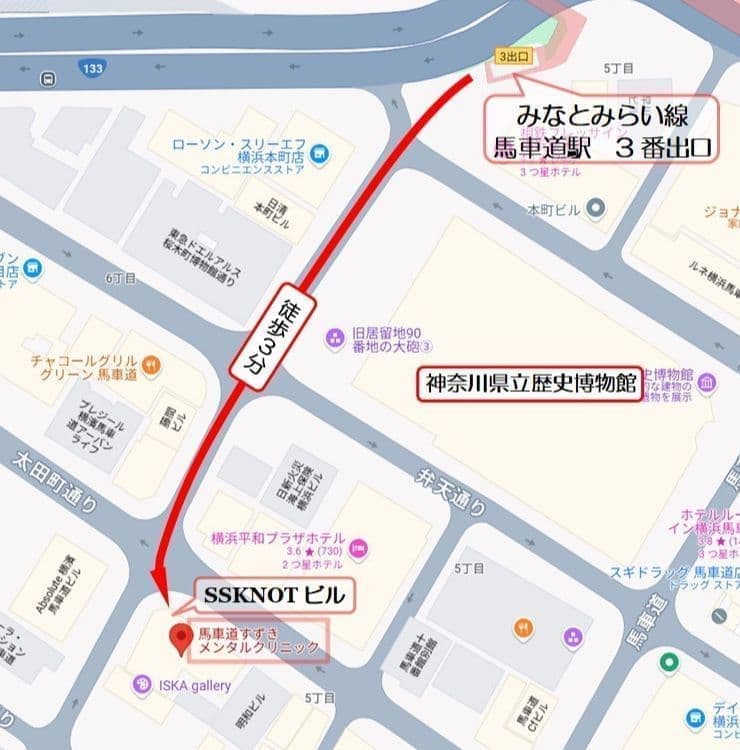 みなとみらい線馬車道駅3番出口を、まっすぐ南に歩いて2~3分で、