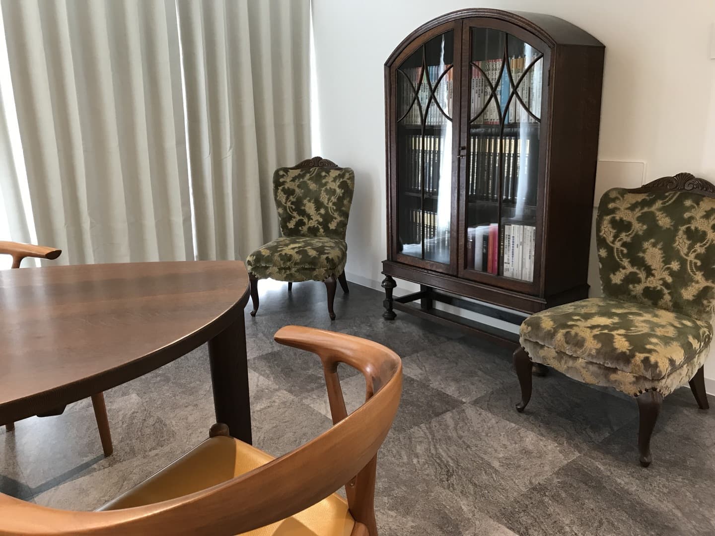 少しでもゆっくりとしていただけるよう(待ち時間は少なくしたいのですが)、ありきたりだったリビングにアンティークをあしらうことにしました。