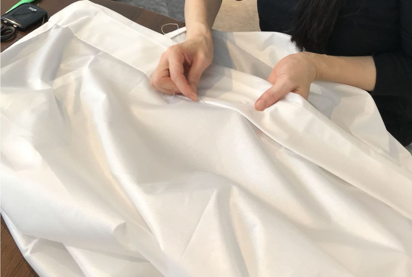 カーテン直し 事務担当者の手作業でした