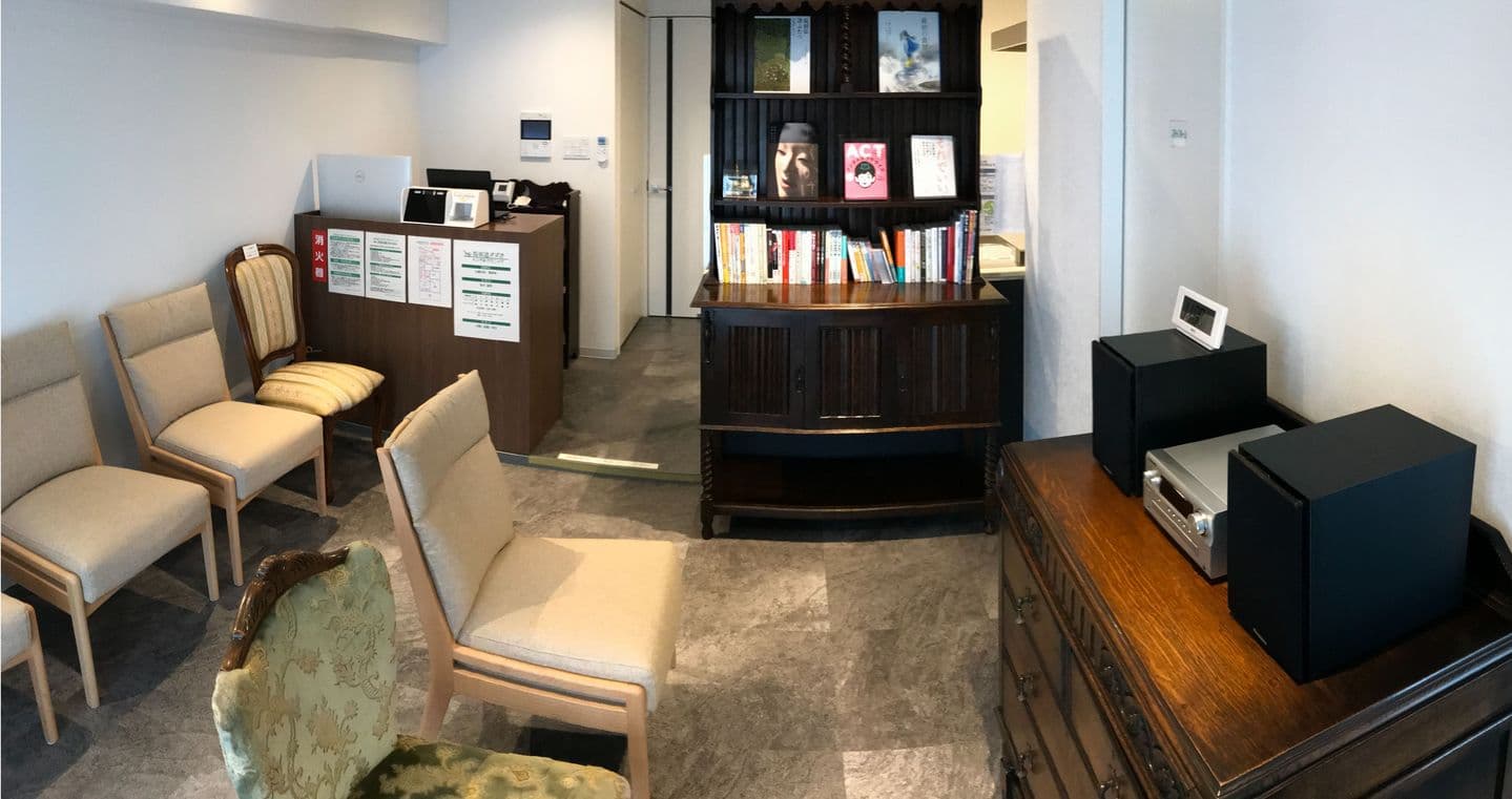 診察室や待合室というよりは、ただの居間です。知人方を訪れるかのように、気軽においでいただきたいのです。でも、“らしからぬさ”のため、かえって皆さまを驚かせてしまったら、もう、ごめんなさいーー。